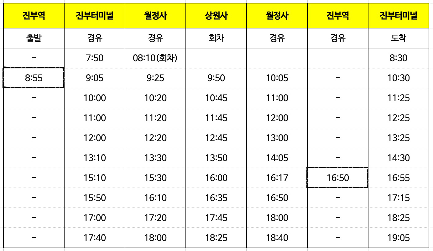 진부역(진부터미널)~오대산 버스 시간표 (23. 09월 기준)