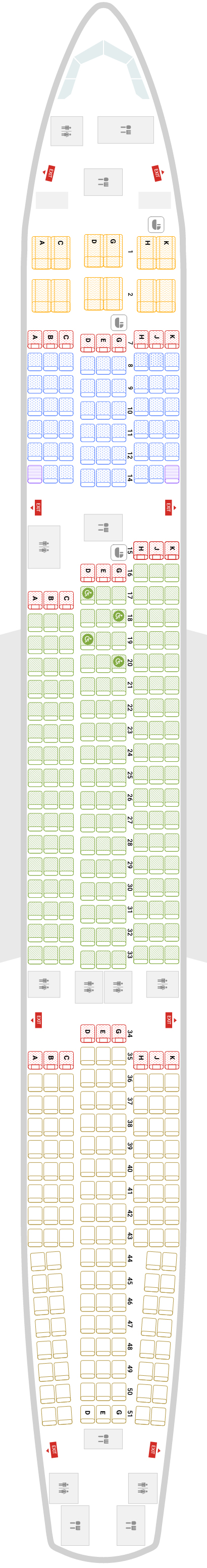 좌석등급 및 구분은 위에서 설명한 A330-200 기종과 동일합니다. 좌석 업그레이드 비용 역시 동일하고요. 다만 좌석수만 조금 더 늘어났다는 차이점이 있습니다.